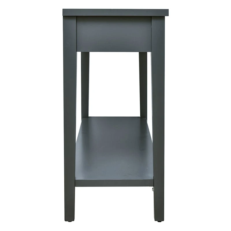 Modern farmhouse meets At Home prices in Honeybloom, our exclusive new brand that celebrates life lived together. Our Redmond 2-drawer console table with one lower shelf provides large storage for all your practical or decorative needs. The dark grey finish on the console table matches all sorts of furniture styles and will be beneficial in any room in your home.