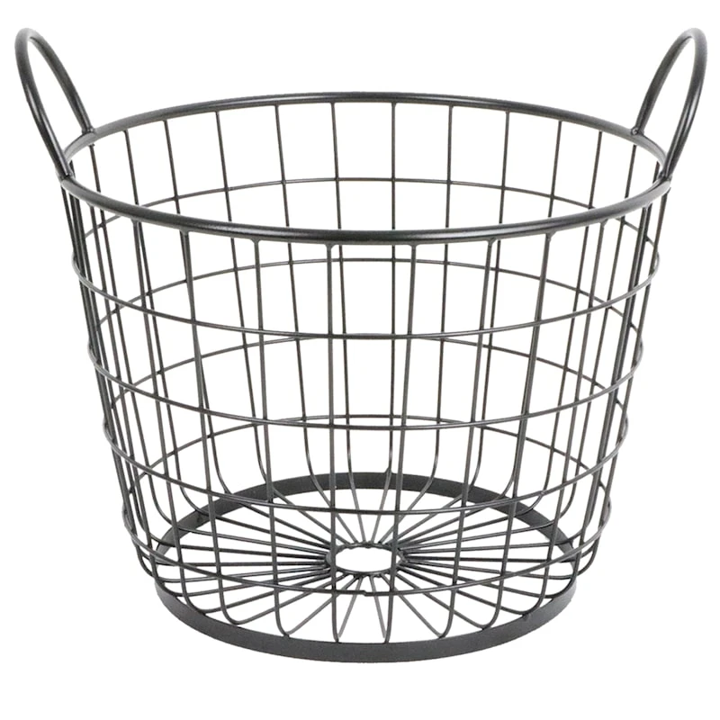 Metal Round Wire Grid Basket With Handle, Medium