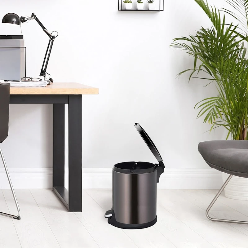 Round Black Stainless Steel Pedal Bin, 5l
