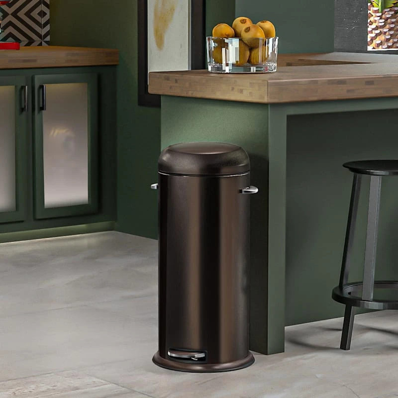 Round Black Stainless Steel Retro Pedal Trash Bin, 30l